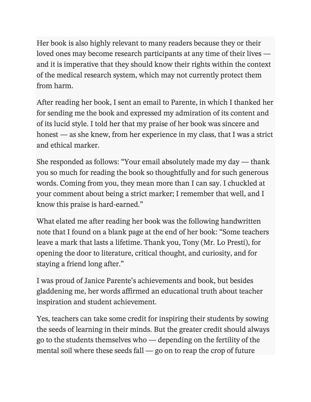 “Some Teachers Leave a Mark that Lasts a Lifetime”